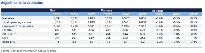 - We have become slightly more cautious regarding organic growth for the full year due to continued lacklustre markets in Q3. Hence, we adjust our earnings estimates lower by about one per cent overall. However, we do not foresee any major changes to our current base case valuation of SEK 50 per share in conjunction with the Q3 report on 20 November.