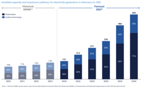 Installed capacity and expansion pathway for electricty in Germany (in GW)