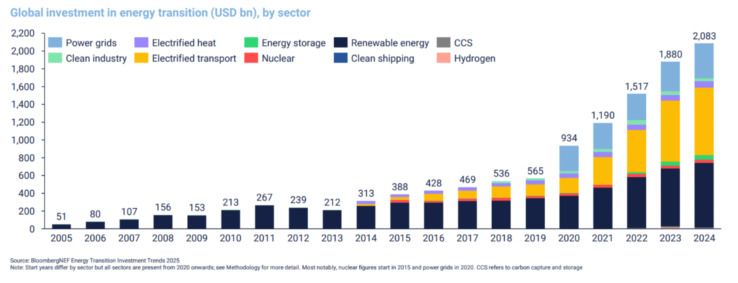 Global investment in energy transition (USD bn), by sector