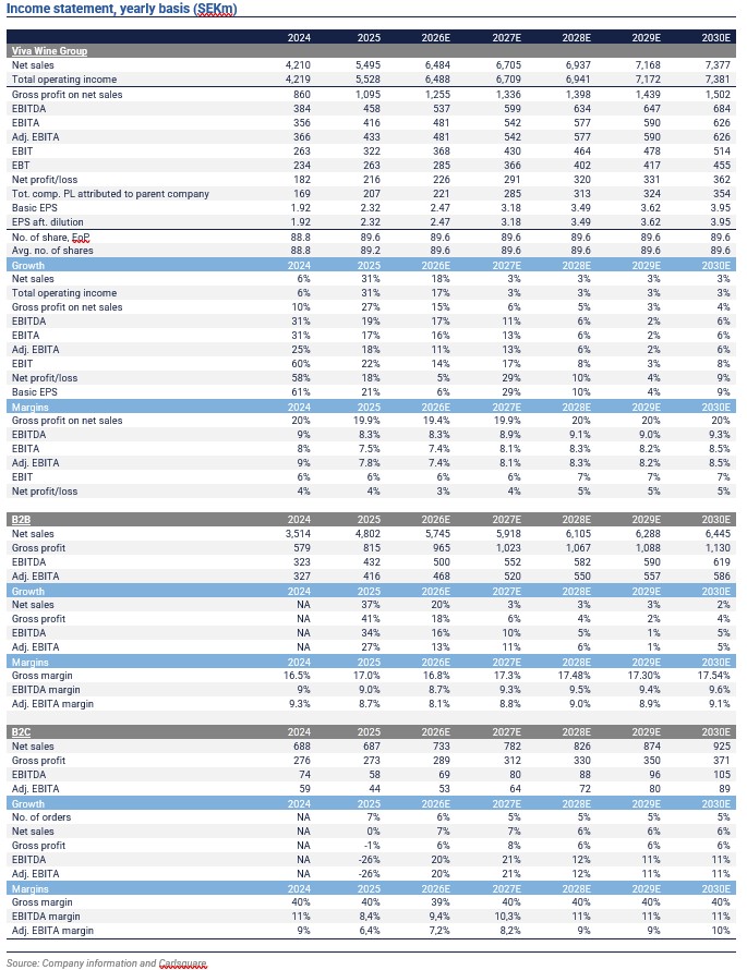 - At the same time, low demand and seasonality (Q1 is typically the weakest quarter of the year in the Nordic B2B markets) will negatively impact organic growth and volumes. We believe wine demand has been slow at the beginning of the year, in line with the previous quarter. For example, the Finnish monopoly market was down 5.7 per cent in January tp March despite a soft comparison period in 2025.